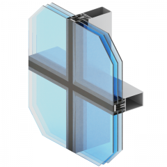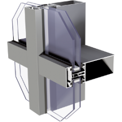 Félstrukturális függönyfal rendszer. Kívülről sík felülettel, nem látható alumíniumszerkezettel bíró függönyfal szerkezetek tervezésére szolgál.