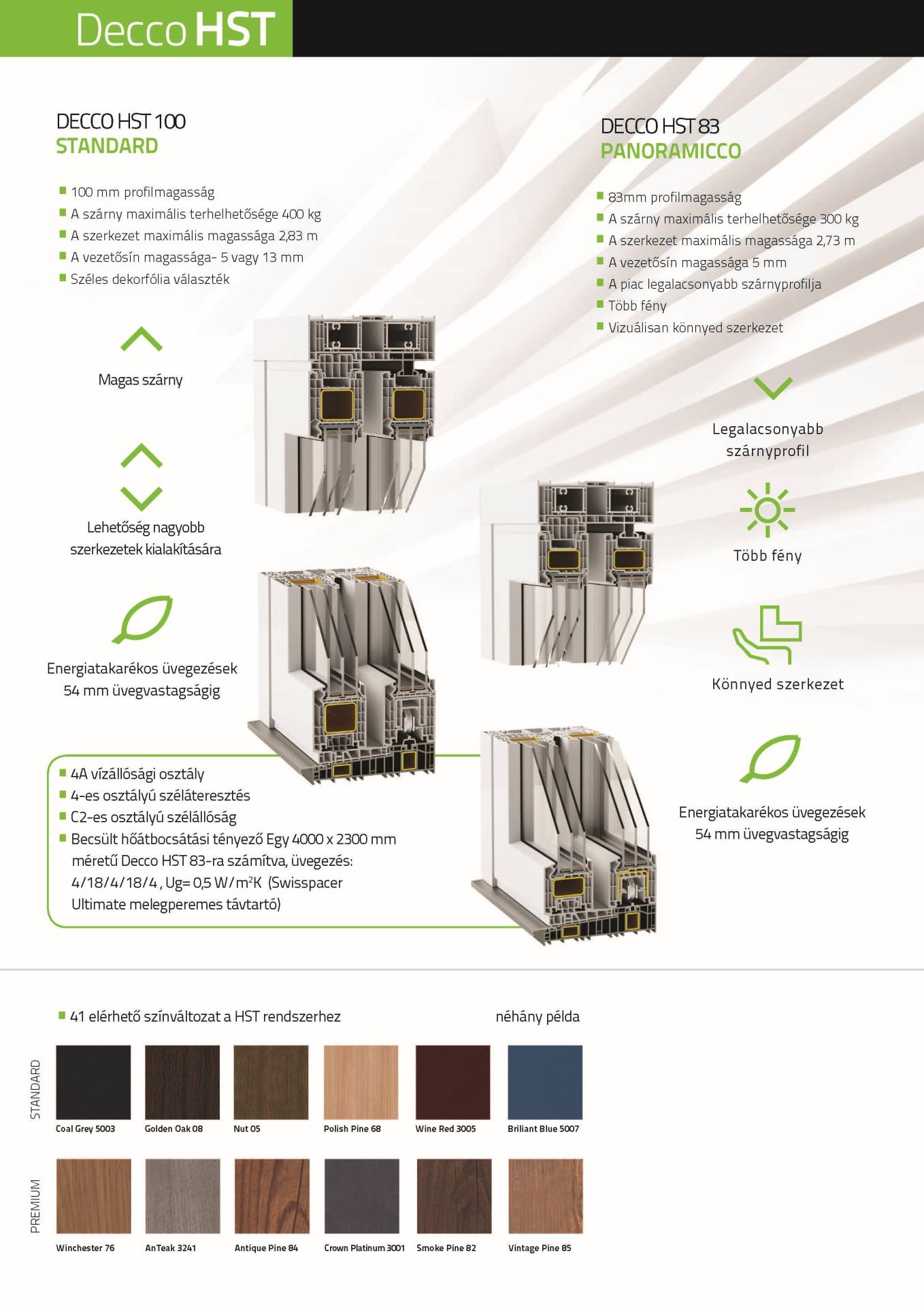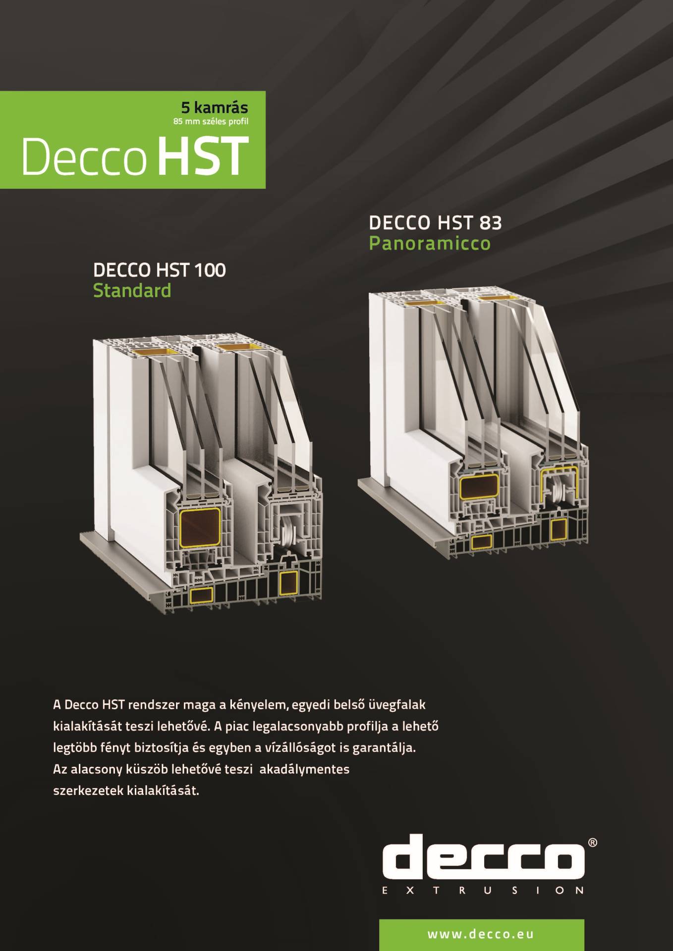 A Decco HST rendszer maga a kényelem, egyedi belső üvegfalak kialakítását teszi lehetővé. A piac legalacsonyabb profilja a lehető legtöbb fényt biztosítja és egyben a vízállóságot is garantálja. Az alacsony küszöb lehetővé teszi akadálymentes szerkezetek kialakítását.
