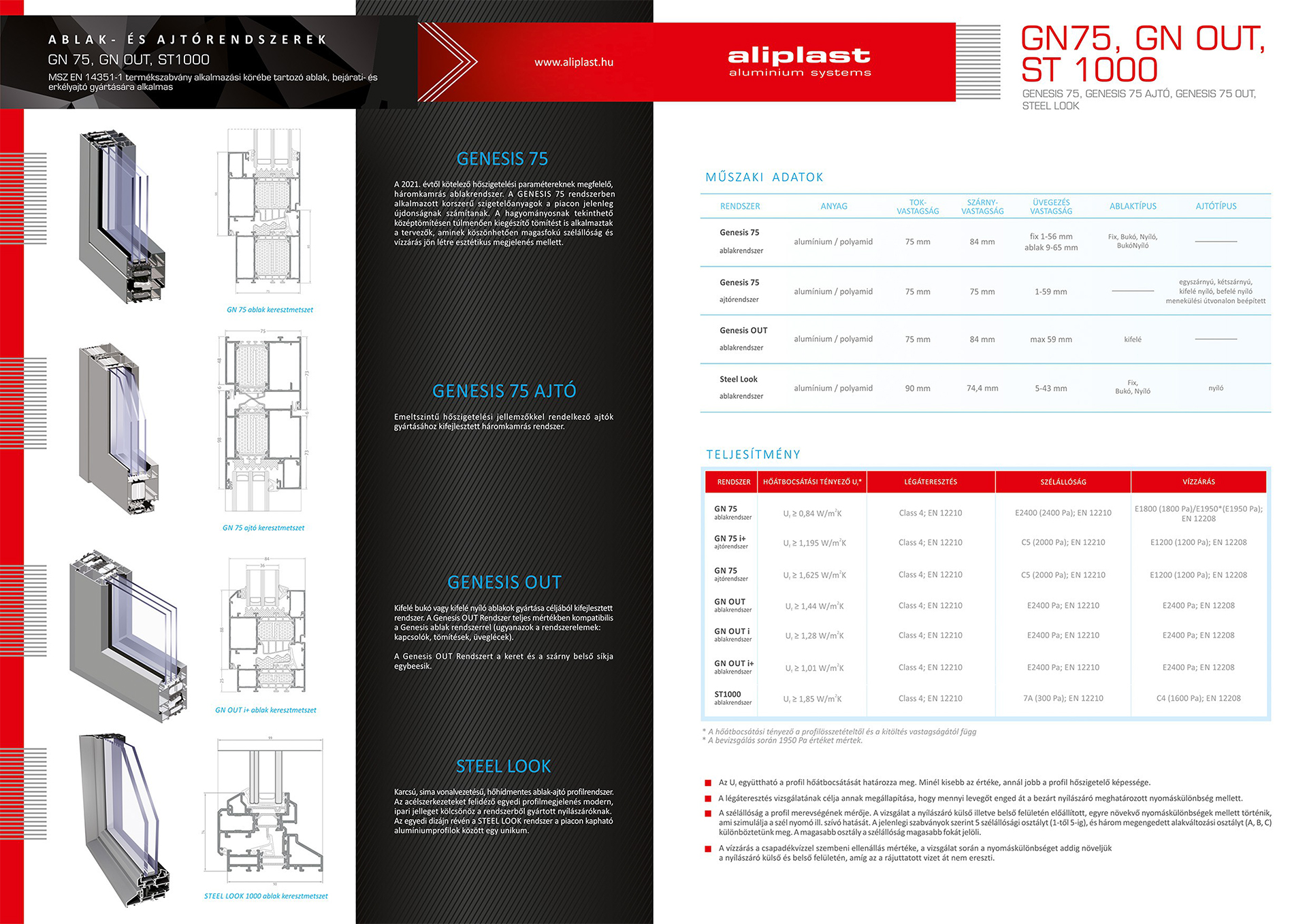 A termék 75 mm-es beépítési mélységben kapható, kompatibilis a Genesis 75 rendszerrel (a GN 75 szellőzőszárny kívülről egy síkban van a Genesis 75 rendszer tokprofiljaival).