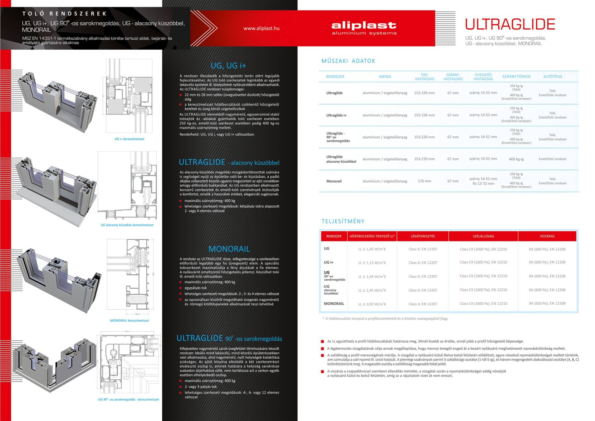 Az UG toló szerkezetek leginkább az egyedi lakáscélú épületek illetve középületek nyílászáróiként alkalmazhatók. Az Ultraglide rendszer tulajdonságai: üvegszövettel dúsított 22 és 28 mm vastag hőszigetelő stégek a keresztmetszet hőátbocsátását csökkentő hőszigetelő betétek és üveg körüli szigetelőcsíkok